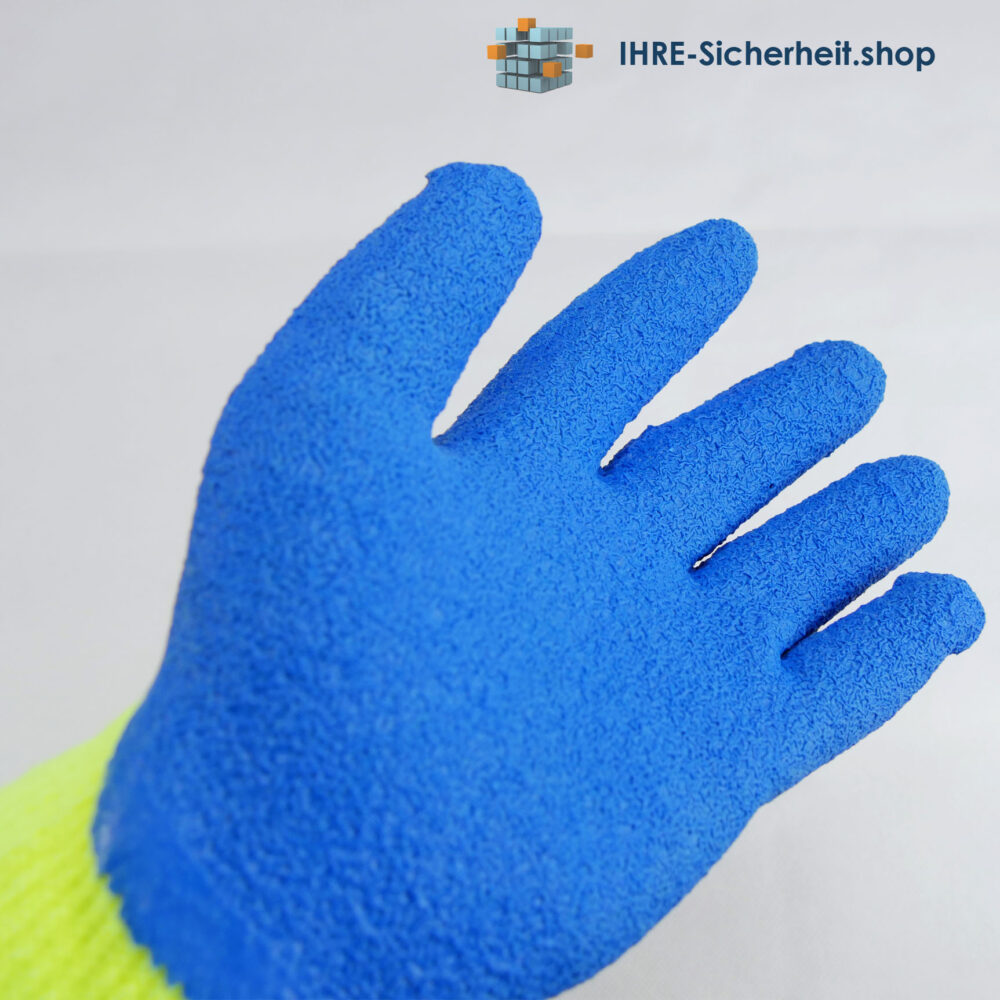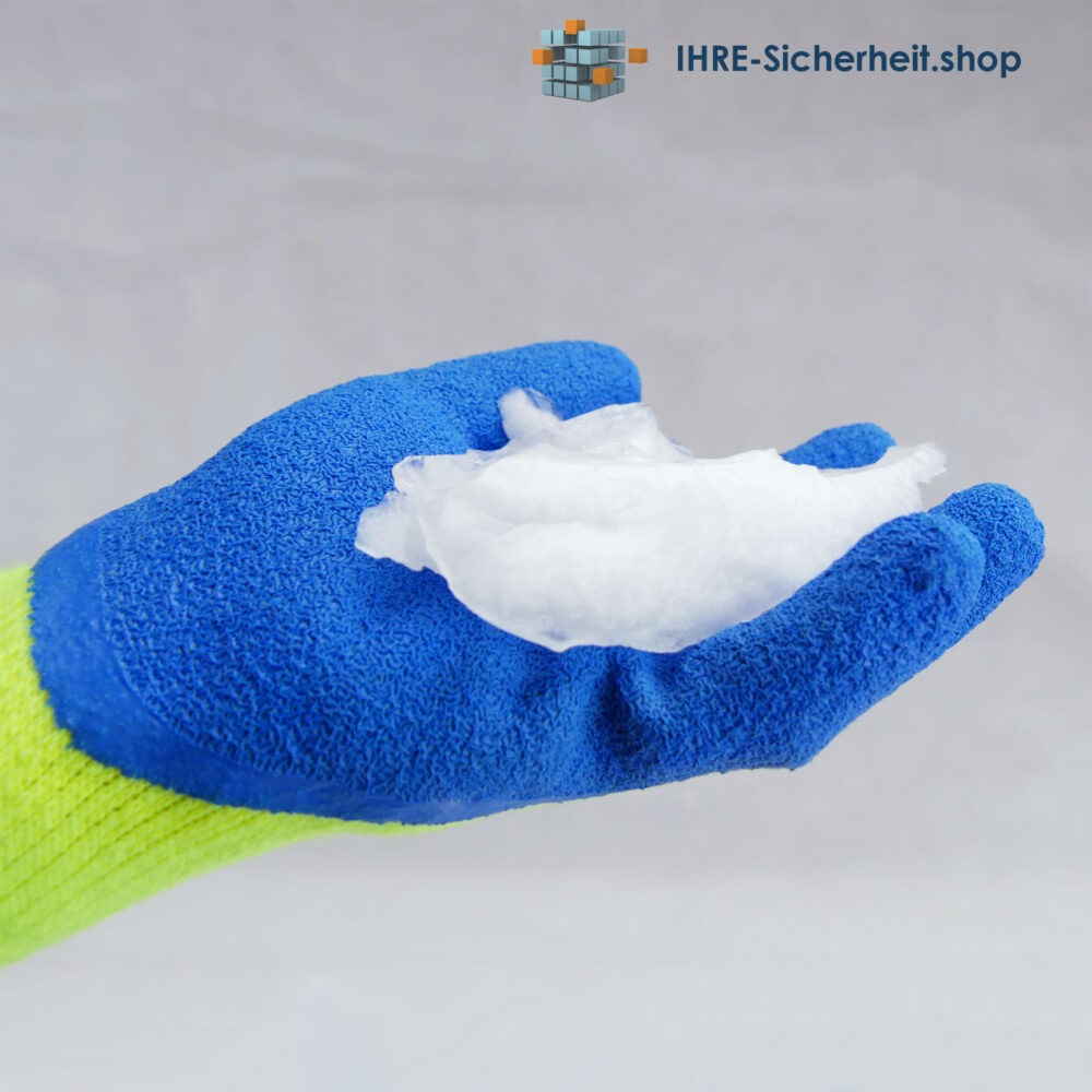 Erfrierungen sind nicht die einzige Gefahren bei der Arbeit in niedrigen Temperaturen. Durch langanhaltende Kälte wird auch Ihre Feinmotorik beeinflusst. Dies verlängert nicht nur den Zeitraum für einzelne Arbeitsschritte, es erhöht auch das Risiko für Arbeitsunfälle. Der Cold Grip Kälteschutzhandschuh hilft Ihnen, diesen Gefahren etwas entgegenzusetzen. Durch die elastischen Materialien des Handschuhs wird Ihre Fingerfertigkeit nicht eingeschränkt. Das Acryl-Strick ist weich und schützt auch vor extremer Kälte. Die Handinnenfläche ist in Latex getaucht. Die Fingerspitzen sowie der Daumen sind komplett mit rauem Latex ummantelt. So bleibt Ihr Griff präzise und sicher. Daher eignet sich dieser Handschuh für alle Arbeiten mit niedrig-temperierten oder gefrorenen Objekten. Sie können den Cold Grip auch als Arbeitshandschuh für die kalte Jahreszeit benutzen. Zum Beispiel, wenn Sie Schnee und Eis von Ihrem Auto entfernen müssen.