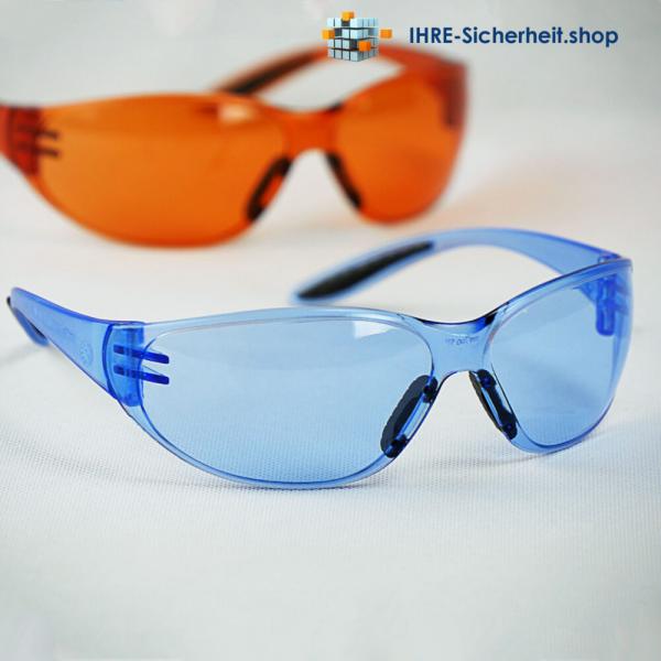 Die Racer Schutzbrille ist leicht, modern und für Arbeitsplätze mit hohem visuellen Anspruch entwickelt worden. Ideal für Prüfarbeiten. Eine Schutzbrille mit einem blauen Filter bietet mehrere Vorteile. Diese Filter können dazu beitragen, dass farbkritische Anwendungen besser erkannt werden können. So kann beispielsweise bei der Überwachung von Prozessen, bei denen Farbunterschiede wichtig sind, eine bessere Sicht ermöglicht werden. Auch bei Anwendungen, bei denen hohe Lichtintensitäten vorhanden sind, kann die Verwendung einer Schutzbrille mit blauem Filter zu einer besseren Sicht führen. Durch die Verwendung eines blauen oder orangenen Filters kann das sichtbare Licht reduziert werden, was zu einer Entlastung der Augen und einer besseren Kontrastwahrnehmung führt. Ein orangefarbener Filter kann dazu beitragen, dass die Augen weniger von den Reflexionen auf Wasser, Schnee und anderen glänzenden Oberflächen belastet werden, weiter kann die Farbwahrnehmung durch einen Orangefilter positiv beeinflusst werden.